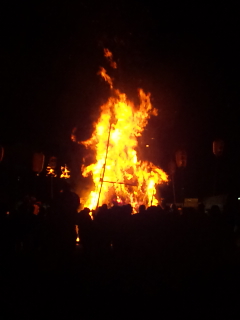 キャンプファイアー的な火を各町が取り囲み、堤みたいな大きな太鼓を叩きます。