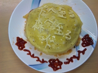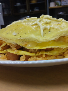 「嗚呼 (ケチャップ)ご飯と卵 ご飯と卵 ご飯と卵 多重層菓子♪」(笑)