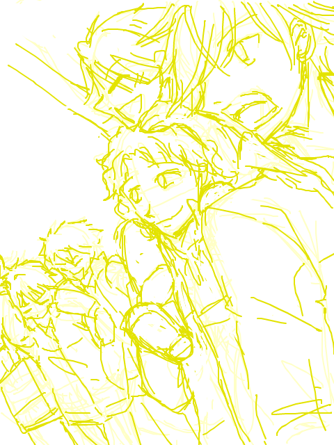 ……遠近感(バックの3人をもう少し下げて描くべきでしたね;;)とか影とか、そもそもジャージとかいろいろおかしなところを挙げたらきりがないのですが;