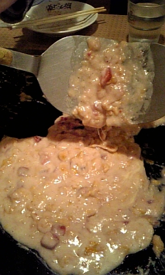 秋沙は「ぶっかけ月見とろろお好み焼き」みたいな名前のを食べました。